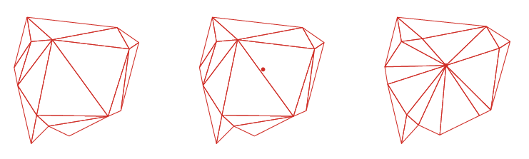 I punti vengono aggiunti uno ad uno ed ad ogni passo le proprietà della triangolazione di Delaunay vengono mantenute. Dal momento in cui vengono aggiunti punti, questi una volta congiunti ai vertici dei triangoli adiacenti devono soddisfare i requisiti.